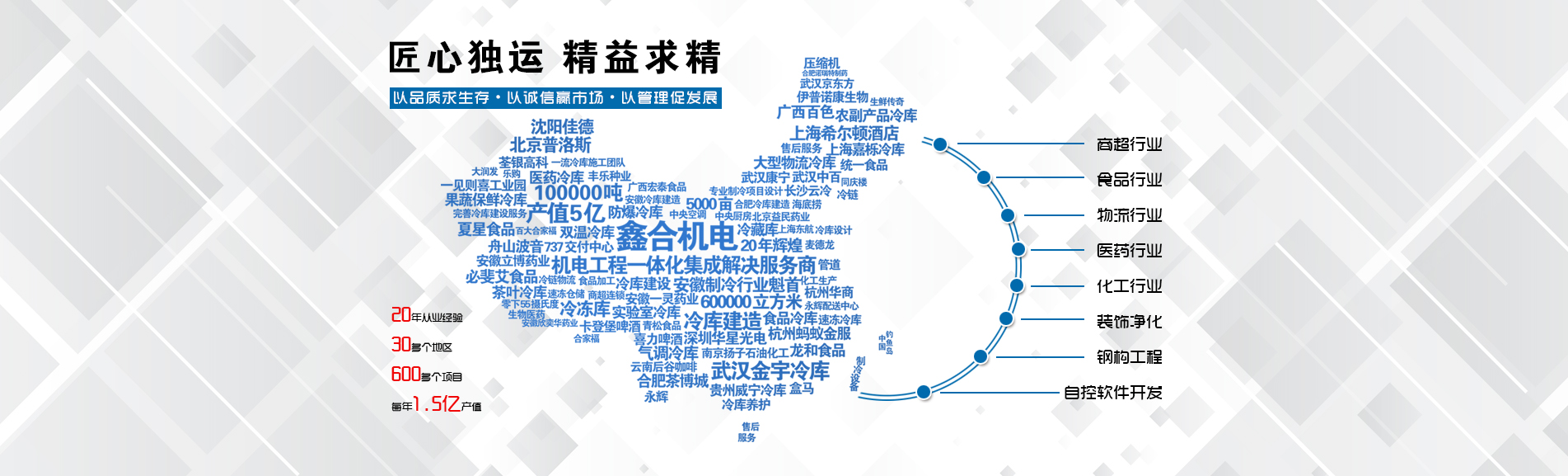 安徽鑫合機(jī)電設(shè)備有限公司于2002年組建運(yùn)營(yíng),專業(yè)從事冷凍、冷藏庫、中央空調(diào)、醫(yī)藥凈化工程的規(guī)劃設(shè)計(jì)、施工承建、售后服務(wù)為一體的綜合性工程公司,與100多家實(shí)力雄厚的大中型企業(yè)建立長(zhǎng)期產(chǎn)略合作關(guān)系,其中有多家世界500強(qiáng)和上市企業(yè)。公司作為中國(guó)倉儲(chǔ)與配送協(xié)會(huì)會(huì)員單位、安徽省制冷學(xué)會(huì)理事單位、上海楊浦區(qū)制冷協(xié)會(huì)工程總承包負(fù)責(zé)單位,引領(lǐng)于行業(yè)前沿。我們將銘記給予我們大力支持的各界新老朋友及合作伙伴,我們將會(huì)保持“互惠互利、共同發(fā)展”的原則與您共創(chuàng)雙嬴的合作關(guān)系。