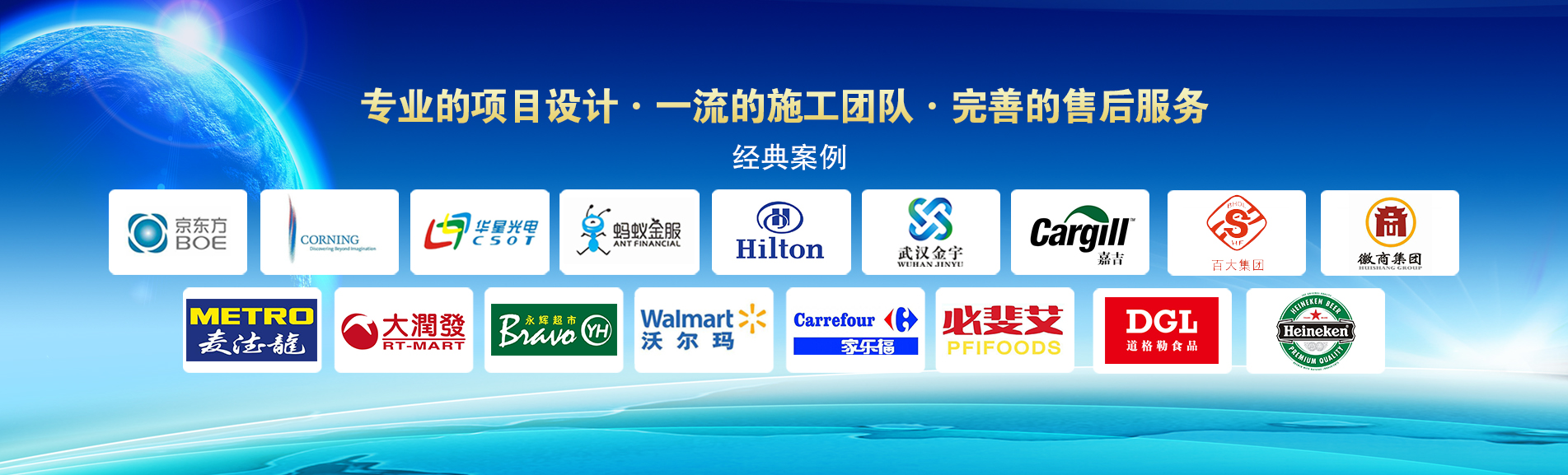 冷凍冷藏設(shè)備大型冷庫項(xiàng)目:   武漢中百物流冷庫(40000㎡)、蘇州、北京普洛斯大型物流庫(17000㎡)、沈陽佳德物流冷庫(20000㎡)、上海東航配餐物流庫(6000㎡)、杭州華商勾莊物流冷庫(24000㎡)、安徽安心蔬菜綠色食品冷庫(12000㎡)、武漢金宇冷庫(35000㎡)、必斐艾食品廠(14000㎡)、中國(guó)-東盟(百色)農(nóng)產(chǎn)品交易中心冷庫物流工程(30000㎡)、遵鐵物流冷鏈物流區(qū)建設(shè)項(xiàng)目中心冷庫物流工程(16500㎡)、長(zhǎng)沙云冷產(chǎn)業(yè)園冷庫物流工程(21000㎡)等;大型中央空調(diào)項(xiàng)目:   武漢康寧顯示玻璃廠廠房、武漢京東方模組廠房、武漢華星光電模組廠房、深圳華星光電模組廠房,杭州阿里巴巴辦公樓,舟山波音737機(jī)場(chǎng)辦公樓,南京江北能源站、上海金融大酒店等